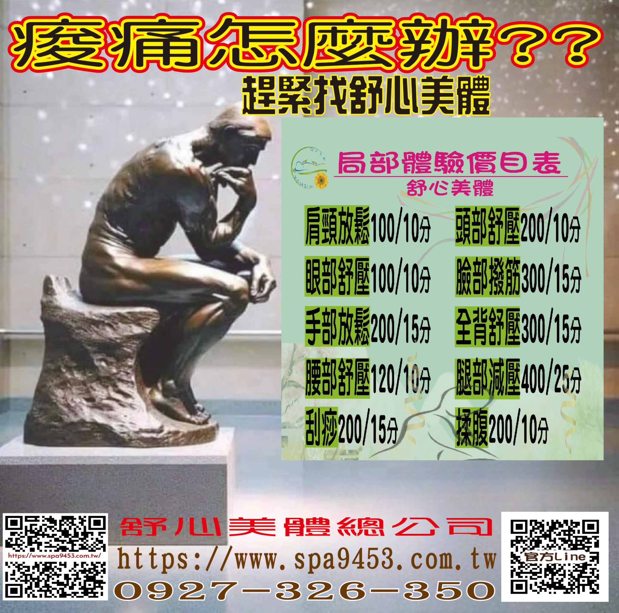 舒心美體按摩項目: